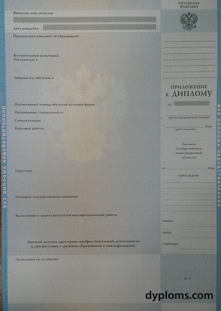Наши специалисты обладают точнейший информацией об учебных дисциплинах и руководящем составе разных вузов в разные годы, а следовательно, Ваши вкладыши к дипломам будут заполнены корректно и соответственно времени.Цены, которые мы предлагаем своим клиентам, одни из самых доступных в интернет-пространстве. К тому же мы не требуем предоплат.Гарантируем анонимность и удалим все Ваши данные из наших баз во избежание утечки информации.